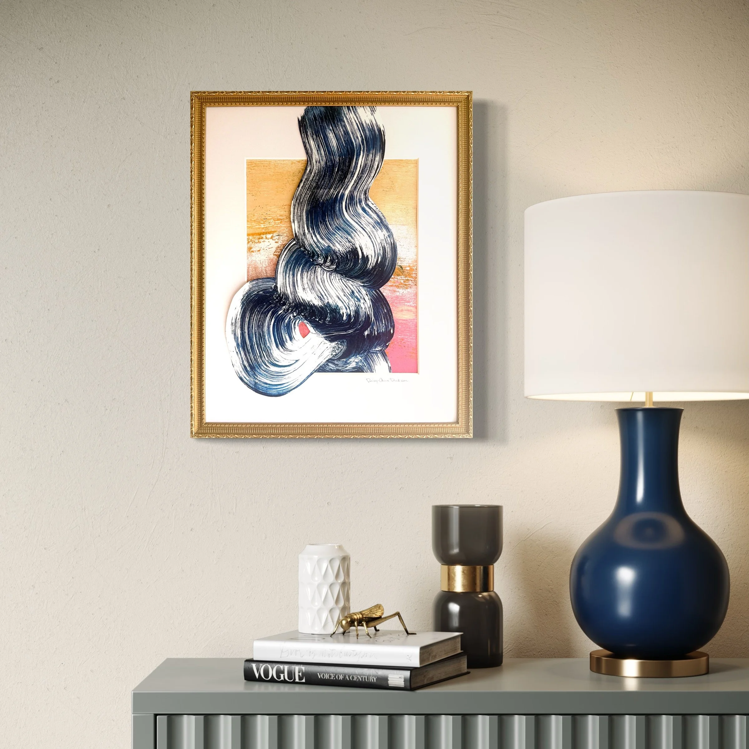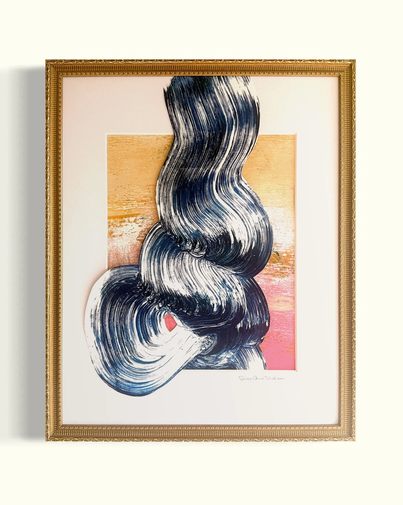 Original, collaged monoprints using salvaged paints. Matted and framed in gold frame.