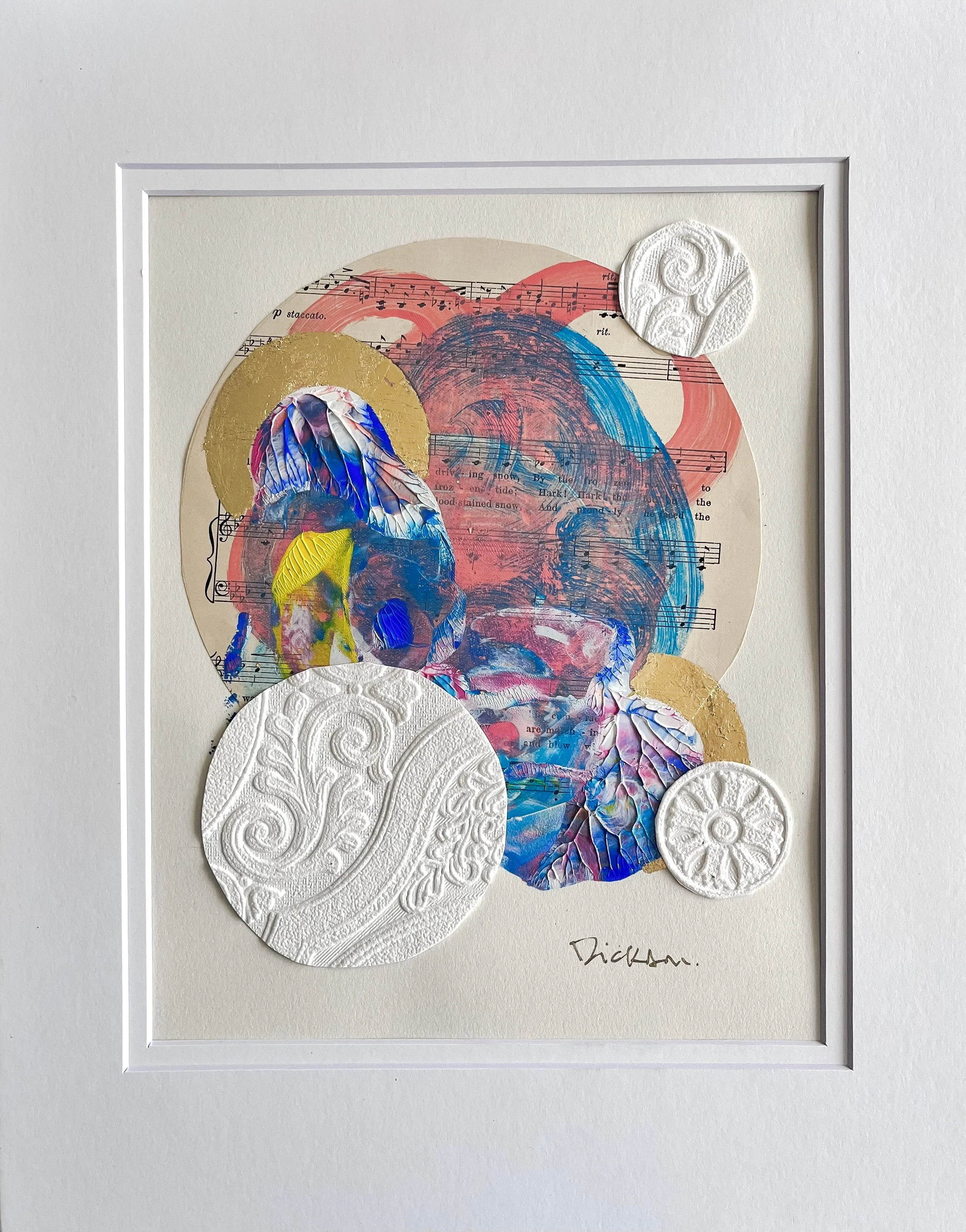 This painting was inspired by the Georgian summer sunsets. A veil of rose gold metallic shimmer gives theses blues and pinks an ethereal feel. Breathtaking near a window, with in natural light.